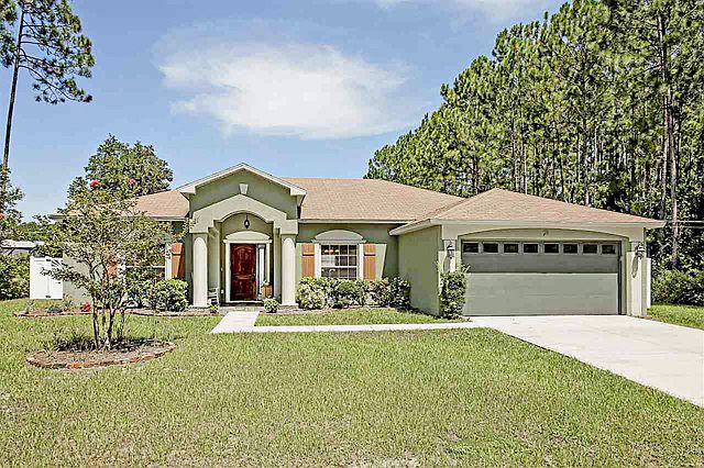 Single Family - Palm Coast, FL You are home! This 3 bedroom, 2 bathroom home has upgrades galore. Loads of character and custom features! At the front door, you are greeted with a solid cedar door and a cedar lined ceiling. Upon entering the home, you will find real brick at the entry way as well as a beautiful stained glass light fixture. The French doors open up to a office/den and the living area opens to the oversized kitchen.,Many custom features throughout: wood/tile/cork floors, cherry slab bar, stainless appliances, copper and brick backsplash, granite counters, under mount sinks, under and over mount cabinet lighting, custom trim, screened/tiled lanai and so much more. The exterior boasts new paint, a new permitted white privacy fence, hurricane shutters, custom built-ins in the garage for your projects, and custom cedar shutters. All this, across from a nature preserve, 2 minutes to US 1, 3 minutes to Town Center, shopping, bike trails and schools.