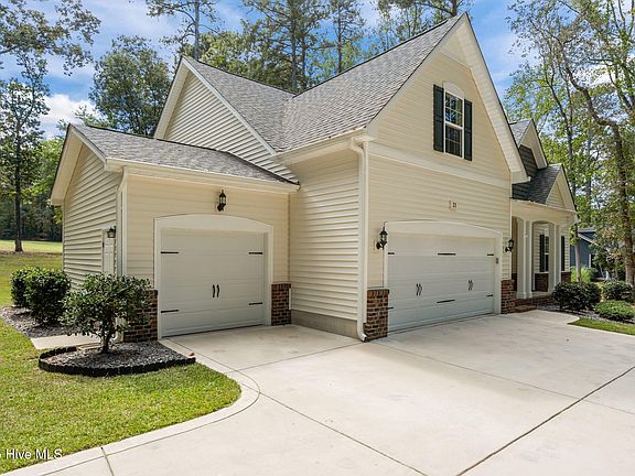 Where cozy living meets golf course views in the heart of Foxfire. Set back on a quiet cul-de-sac road, this 2020-built home captures the perfect blend of comfort and lifestyle. Overlooking the Foxfire Red Course, the serene backyard setting makes every day feel like a vacation! Inside, the open-concept layout features vaulted ceilings, arched doorways, and a cozy gas log fireplace, creating an inviting flow that's perfect for both relaxing and entertaining. The split floor plan includes 3 bedrooms and 2 full baths on the main level, plus a versatile flex room for an office, playroom or hobbies. Upstairs, a spacious bonus room with its own half bath adds even more flexibility for family or guests. The foyer, living room, dining area, and flex room showcase beautiful wood style laminate flooring, while all bedrooms and the bonus room are carpeted for comfort. The kitchen shines with white cabinetry, stainless steel appliances, tile backsplash, granite counters and elevated breakfast bar, and a pantry for added storage. The primary suite enjoys calming golf course views, offering a true private retreat.