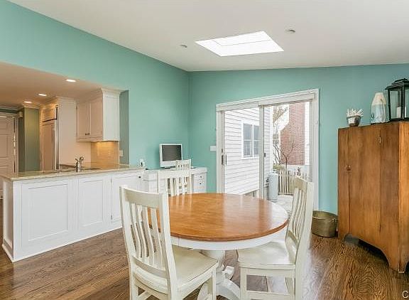 An immaculately renovated home on a dead-end street in the heart of Rowayton. Bright, open kitchen with granite countertops and stainless steel appliances flows to a great room featuring a stacked stone fireplace, and vaulted ceiling with skylights. Walk out to a new bluestone patio with sitting wall and enjoy the quiet grassy backyard. Four bedrooms upstairs including a master suite with spacious his and hers closets. Fifth bedroom/playroom on the first floor. Mudroom with first floor laundry. Gym/workout space in the basement. One car garage. Easy stroll to town, Pinkney Park, schools, and the beach.