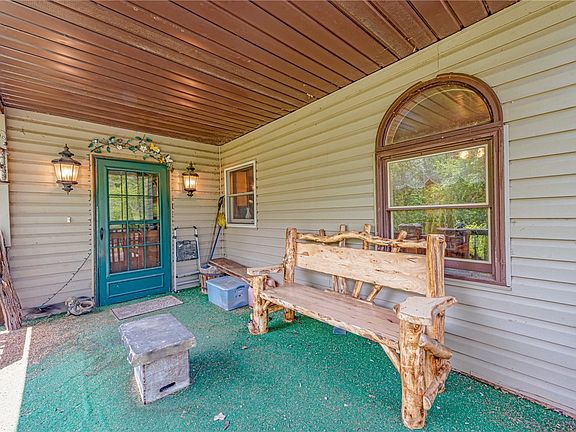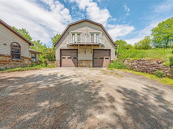 Nestled in the Laurel Highlands with privacy is this 3 bedroom, 2 bathroom ranch home with an open concept living room, dining room & kitchen featuring a breakfast nook. The living room showcases a stone wall, pellet fireplace, & cathedral ceilings with sliding glass doors leading to your private backyard deck & nature haven. The custom-made kitchen includes authentic Amish solid wood cabinets & black walnut live edge counter tops. The house has hardwood floors, walls and ceilings throughout with rustic barnwood trim. The master bedroom includes a master bath with Amish-made vanity & cabinets. Situated on just under 1 ¾ acres, this property includes five kinds of berries, grapes, apples, rhubarb, and is located just 10 minutes from Seven Springs as well as near 3 state parks. Also includes detached oversize two-bay garage with potential apartment above, a barn, & A-frame storage shed, chicken coop & swimming pool. The view from atop the property is Amazing!