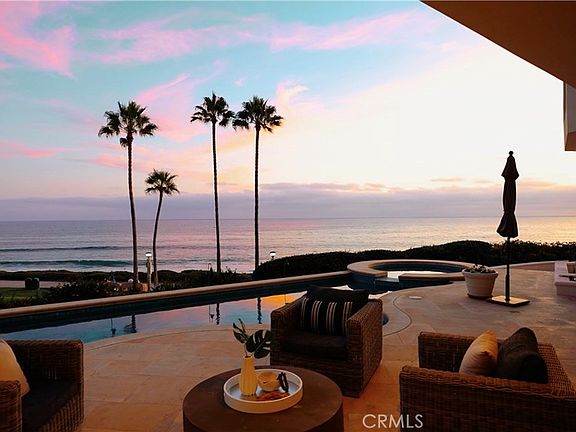 NEW PRICE! BY FAR THE BEST PRICED HOME OF THIS CALIBER AND LOCATION ON THE OCEANFRONT! Discover Oceanfront living on an unforgettable Lot. With views of the majestic Five Star Ritz Carlton on your left, waves crashing along the wide stretch of beach, and the ocean directly in front of you, this may be the most spectacular lot in Ritz Cove. How many times are you able to be oceanfront, AND see the lights of a world famous resort to your left, which makes for incredible, twinkling evening beauty. Walk to the world famous resort for dinner, coffee or a massage. The lot is one-and-a-half times as large as typical oceanfront lots in the community, allowing the home to be just shy of 10,000 SF, and it has a six-car garage. With much more frontage than the average oceanfront lot, you are able to watch surf contests, see dolphins, and enjoy incredible ocean sunsets as you gaze at Catalina. The home is three levels, providing the owner with 5 en suite bedrooms, 3 offices, and a Craft Room. The oceanfront estate includes an attached Guest Quarters with a separate entrance. The Guest Quarters is complete with its own living room, kitchenette and bedroom. A grand dining room looks out over the pool and ocean, and the kitchen is open to the Great Room and massive views in both directions. The kitchen looks out over the ocean, and there is a secondary kitchen pantry area with an additional large refrigerator, and lots of shelving and cupboards. Perfect for organization and storage. The Primary Bedroom Suite has a spacious bedroom, a separate oceanfront sitting area, a coffee bar, and a huge custom closet: one closet with cedar lining and another with enclosed glass doors. An Elevator whisks you to all three levels. One of the Guest Bedrooms has a separate sitting area as well, allowing a family member to live in privacy and comfort. The lower level currently serves as a Billiard room, and a pilates machine is nearby. This could easily be turned into a theatre or a 3D Virtual Reality Meta Area. A gracious stone gated entry allows access to the front door to be controlled and private. Set on a quiet cul de sac, on a single loaded street, the peace and quiet of this home is remarkable. Get away to your new life, in an oceanfront paradise.