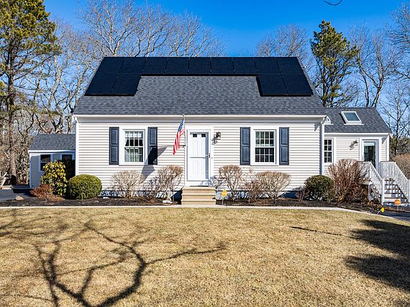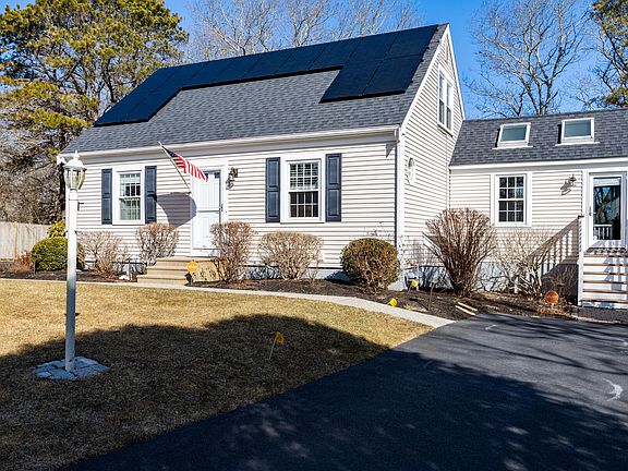 Welcome to Winslow Farms in the heart of delightful Mashpee, where this beautifully updated 4-bedroom, 2-bathroom Cape Cod-style home awaits! Sited on a peaceful cul-de-sac, this home offers picturesque pond views from the backyard, creating an unsuspecting retreat. Packed with modern upgrades, this home features a new roof, windows, furnace, AC condenser, and appliances--plus energy-saving solar panels for lower utility costs. Inside, you'll find a spacious kitchen, perfect for entertaining, along with a bright living room and dining room. Step outside to an expansive deck, while grilling, enjoy the ever-changing scenery. A bonus finished room in the lower level too. The property also includes two paved driveways with paver aprons, professional landscaping, an irrigation system, and a shed for extra storage. Located just minutes from Mashpee Commons, public beaches, and major commuting routes, this home offers both tranquility and convenience. Don't miss this rare opportunity--schedule your showing today!