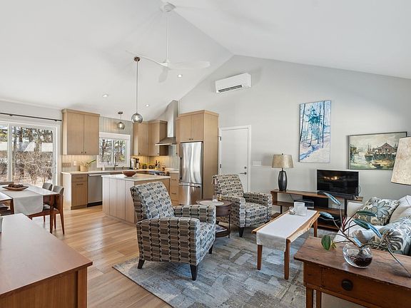 This beautifully remodeled end unit is in a terrific Yarmouth location with direct access to the Royal River, a short walk to the Royal River Park and in-town Yarmouth, and a 15 minute drive to Portland. The exquisite, custom-designed renovation provides premium finishes. A chef's kitchen with wonderful amenities includes a Fisher and Paykel cook stove and refrigerator, outstanding storage, and abundant counter space. With a cathedral ceiling, the lovely open concept living room, dining area and kitchen has a sliding glass door that opens to the new, private deck. The first floor also offers a full bath, laundry space and two bedrooms, providing one floor living, if desired. Upstairs is a spacious bedroom suite, perfect as a primary bedroom, private guest space or an office. The Riverbend Condominium Association is well run and offers the ability to keep your kayak at the river's edge for easy enjoyment of the Royal River. This is truly move-in ready and a rare find. Please see the extensive list of recent improvements.