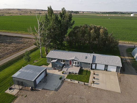 This home is only minutes away from Glendive on a full acre lot. Paved roadway the full route to the home. Irrigated farmland surrounds the area. Underground sprinkler system fed by Buffalo Rapids Irrigation District. Natural Gas is supplied by MDU. High speed internet access through Mid Rivers Communications. Heated 2 stall attached garage large enough to fit full size vehicles. We have 2 - crew cab, long box, one ton pickups with grille guards that fit perfectly inside. Large detached insulated garage. Large cold storage room in unfinished basement. New windows, siding, roofing, and drain field in 2014. New composite deck in front yard and new colored concrete patio in backyard with plenty of shade for cooking and outdoor living. Yard has plenty of room for kids to roam. Excellent view along route to the home from Glendive as well as a front yard view looking south along Yellowstone River Valley and farmland. Wildlife of all kinds are frequently in the area and visible.