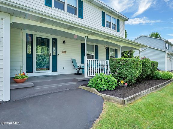 Enchanting Colonial with a generous footprint, 4 great size bedrooms, master w/en-suite & walk in closet- eat in kitchen w/oak cabinets, back splash, ceramic tile & hardwood floors, family rm w/gas fireplace & sliding glass doors leading to deck, patio & gas firepit, formal living rm, formal dining rm, majority of basement is finished w/liberty sump pump which stays on if power goes off, built in book shelves & recessed lights, laundry area, all window treatments stay, all new carpeting throughout. 2-car garage, 10 minutes to Albany, Amtrack Station, Regeneron and all w/i East Greenbush CSD which was just Voted 'Best School District' in the Capital Region for the second year in a row,