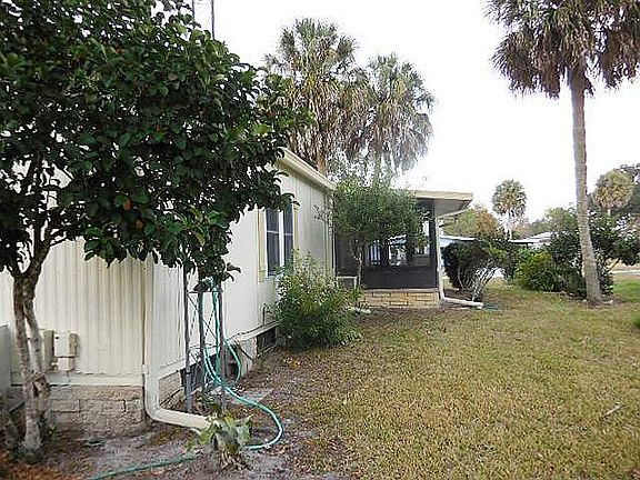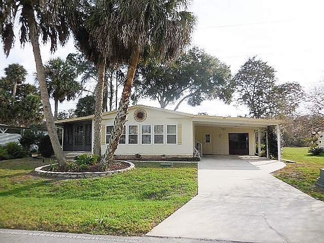 Lovely furnished updated home with many upgrades. Double pane windows and laminate flooring throughout. Stainless steel appliances. Living room's wall of windows and sliding doors to raised furnished Florida Room offers plenty of light and room for entertaining. Master Bedroom has sliding doors into a screen room to enjoy private view of large back yard with no neighbors. Includes attached carport, utility room, and golf cart garage, and RO Share. Perfect place to spend winters or year-round.