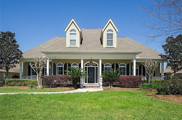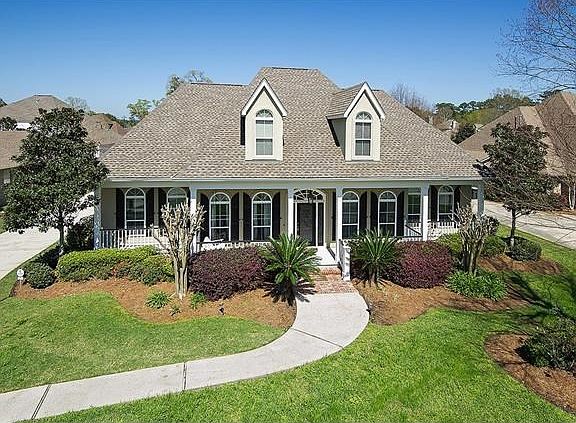 Beautiful Acadian...Enjoy the view from the front porch or relax on the covered tile patio with awning and fenced back yard for privacy. Plenty of upgrades including raised ceilings with crown moulding, wood floors, stainless steel appliances, mature landscaping & irrigation system in front & back of home. The master bedroom & guest room on main floor, 4.5 bathrooms and upstairs study/loft area. Blue Ribbon Schools, new roof in 2015 & new carpet. No Flood Zone. Convenient to schools, Causeway & I-12.