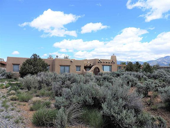 Stunning 3BR/2BA home on Blueberry Hill. Pumice construction, all the right southwestern details...tile floors, nichos, kiva fireplace, vigas. 3rd BR is also an art studio. Beautiful mountain views, lots of passive solar gain. Two private courtyards. This home has been immaculately maintained; ideal for vacation rental, full time or vacation living. Great location, convenient to Taos Ski Valley and town of Taos!