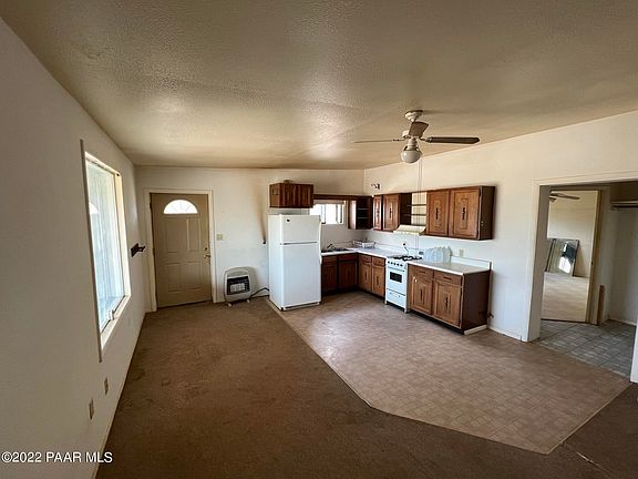 Excellent views of Bill Williams Mountain and San Francisco Peaks from the front porch of this 2 bed, 1 bath home. This is a great home or cabin on 40 fencedacres. Enjoy your 3 phase 35 kw generator that is excellent for heavy duty tools and the 5,000 gallon water tanks that comes with this home. There is also a one carattached garage and barn for your horses.