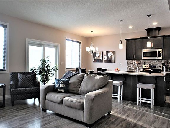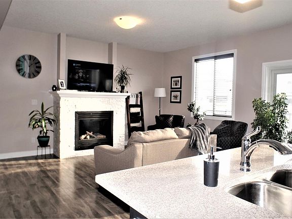 Family style ½ duplex with double car heated attached garage. Foyer entrance to the great room with laminate flooring though out main floor. Stylish gas fireplace with stone facing finishes. 9' ceilings. Functional family style kitchen with island, corner pantry, large island with sink. Plenty of cabinets and granite countertops. All appliances included. Patio doors leads to fenced backyard and large deck. Great for your backyard parties. Upper level includes 3 bedrooms and main bath. Easy laundry closet. Master bedroom suite which will support king size suite. Walk in closet and 4 piece bath with stand alone shower. Basement is finished with large rec. room with laminate flooring. Rough in for bath. Central air conditioning. Easy access to HWY 21. What are you waiting for!