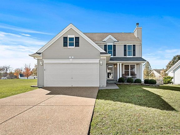 Stylish & impressive home on a cul-de-sac in the Wentzville School District is a MUST SEE! This 3 bed, 2.5 bath boasts a 2-story entry which leads you into the dining room with a wood-burning fireplace. Spacious kitchen with tons of natural light includes a refrigerator, dishwasher, microwave, electric stove, pantry and sliding glass door with built-in blinds. The master suite has a walk in closet, double sink vanity, separate tub/shower & a private water closet. There are 2 more bedrooms upstairs, each with good sized closets. Additional features include: main floor laundry, updated wide plank vinyl flooring on the main level & 5" baseboards. Let's not forget about the fenced-in yard which is perfect for entertaining family and friends! As an added bonus there is a new roof in November 2020! Amenities Stone Meadows has to offer: swimming pool, clubhouse, walking trails, lakes, baseball, soccer fields, and playground. Close to shopping, dining and award-winning Wentzville Schools!