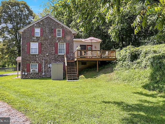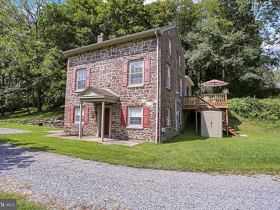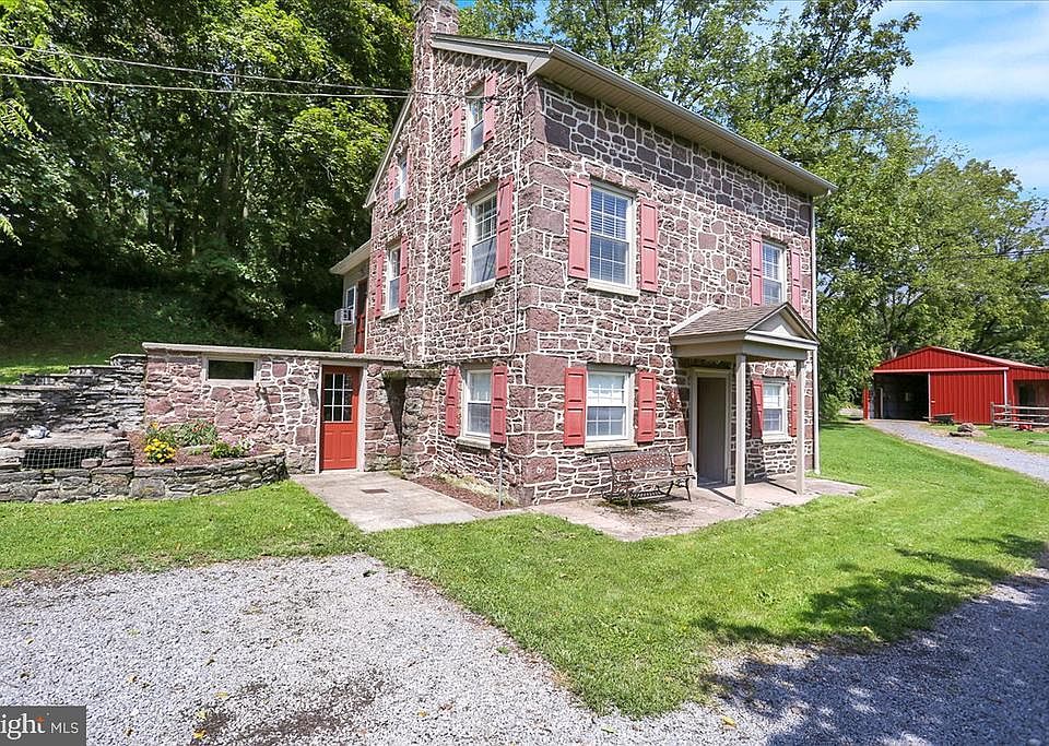Tucked back on Ruby Lane is home to a horse lovers paradise. Upon crossing the stream on the private lane, your breath will be taken away by the 11 acres of beautiful green horse pastures. Currently housing 3 horses on the property is a perfectly maintained 3 stall horse barn with a fenced pasture. 2 additional fenced pastures, a large pond, and plenty of acreage for entertaining and play. The home is a quaint stone farm home with entry level access into the family room area featuring a wood burning stove, full bathroom/laundry room area. Upstairs is full of natural sunlight and has an updated custom country kitchen with stainless steel appliances, granite countertops, and cathedral ceilings with beams. The family room area is newly painted with original hardwood floors and deep windowsills. This level also includes an updated full bathroom with a whirlpool soaking tub. Upstairs you will find generous sized bedrooms with one bedroom featuring a walk through to the additional bedroom for a total of 3 bedrooms. Peace of mind is yours with a newer furnace, roof, and a uv light system already installed for the well water. There is a 2 car oversized detached garage with extra storage on the second level. Secluded home yet convenient to major highways, schools and shopping. You will love to call this Home Sweet Home!