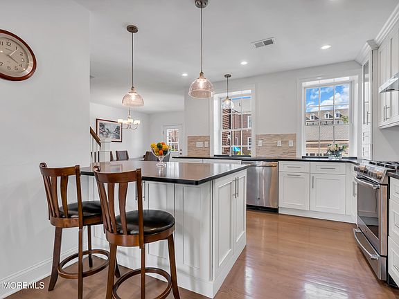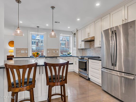 This townhome in historic Ft Monmouth presents a remarkable opportunity! Nestled within a private community, it features an inviting open floor plan that blends modern comforts with historical charm. The recently renovated kitchen boasts top-of-the-line appliances, a spacious center island, and elegant white shaker style cabinetry. The dining area opens onto a large patio, ideal for outdoor gatherings. All rooms are spacious and sunlit. The primary bedroom suite offers a large primary bath and walk-in closet. On the third level, a versatile third bedroom can double as a family room or office, complete with it's own sizable closet.