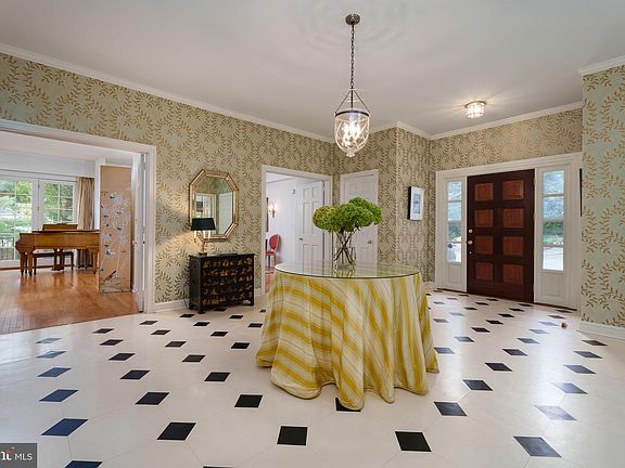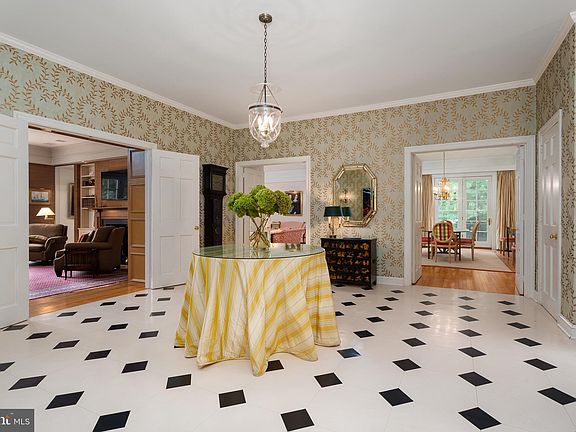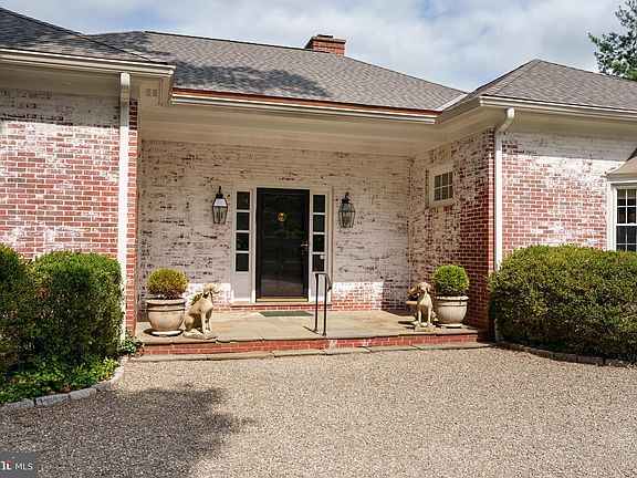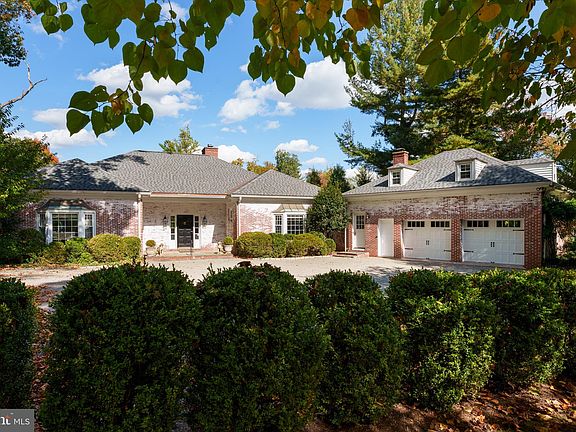 In a storybook corner of Princeton, this gracious French Provincial gem invites you to live your best life in a private, picturesque setting. The gravel courtyard driveway sets the stage for a grand entrance, leading into a world where elegance is the norm. This home is one-level living at its finest. A bold black-and-white tiled foyer sets the tone for the sophisticated spaces beyond. The living and dining rooms are side by side, with a fireplace that beckons you to unwind. Floor-to-ceiling French doors on two sides open up to a balcony overlooking the lawn and to a large deck overlooking a perennial flower garden and serene pond. The family room, complete with built-in bookcases and a second fireplace, offers another access point to the large back deck. A wet bar alcove seamlessly connects the formal and informal rooms, perfect for impromptu cocktail hours. The sunny, remodeled kitchen is a dream come true, featuring glass-front cabinetry, gleaming granite counters, and top-of-the-line appliances. A built-in banquette ensures the chef is never alone. Practicality meets style in the mudroom, complete with a laundry station and a built-in bench with hooks and cubbies to keep everything organized. The spacious first-floor main bedroom with French doors to the deck and two separate but adjoining baths provide an owner’s oasis. Two additional bedrooms—one with a bay window and the other with loads of built-in bookshelves—and an additional full bath offer plenty of space for everyone. The lower level provides an expansive extra room that opens to its own shaded brick terrace, as well as a large shelved storage room and a finished basement workshop, adding yet another layer to this exquisite home. The spacious suite above the two-car garage, complete with a bathroom and kitchenette, is the perfect guest accommodation.