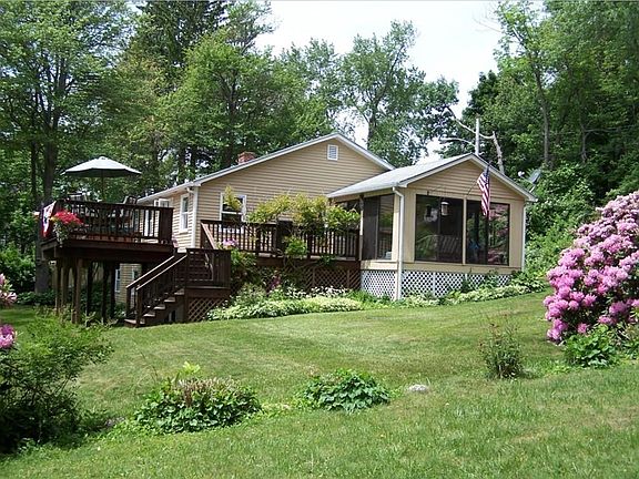 Imagine coming home every weekend or every day and relaxing at your own private resort! This beautifully-maintained three bedroom ranch has 135 feet of water frontage on the Lake Whittemore. It is the last house on a dead end road making it extra, extra private. It has a glassed in, three season porch that leads into the house or out to a multi-level 370 ft.² cedar deck overlooking the water with a five person ThermoSpas hot tub. A set of stairs leads down to the waterfront and a dock that has your Sweetwater pontoon boat ready to go. The upstairs has an open floor plan with kitchen, dining room and living room as well as two bedrooms and a full bath. Downstairs has a laundry room with pantry, water room, workshop and a walk out to the waterfront. Two minutes to Route 9 and downtown. Twenty minutes to Worcester or Mass Pike and route 20....Property does not require flood insurance! Furnishings are negotiable!