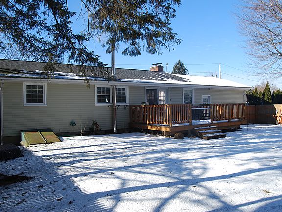 Great LOCATION for this LOVELY updated ranch style home. This home boasts newer siding and energy efficient windows (APO 2 yrs.) Spacious kitchen with dining area, pantry closet and FRENCH DOORS that open up to back deck. Private fenced yard perfect for relaxing or entertaining. EXPANSIVE living room features newer picture window that brings in the light of the day, a wood burning fireplace and hardwood flooring. 3 generous sized bedrooms with HARDWOOD flooring and plenty of cabinet space. The newer WOOD BURNING STOVE in basement will heat the entire home during the winter months. Basement could easily be finished for added living area. Located near Szot Park and Elms College. This home will not last. Call today for a showing.