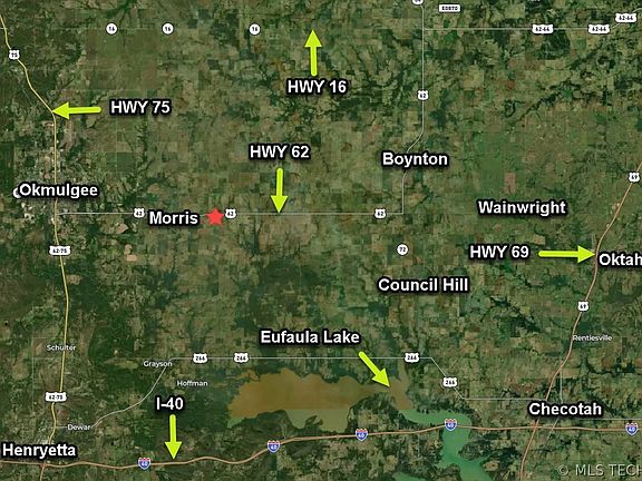 PERFECT 21+/- ACRE HOME SITE ONLY ¼ MILE OFF HWY 62 AND 2 MILES FROM MORRIS. Are you looking for the perfect location to build your dream home just outside of Tulsa? Look no further! Located in the Morris countryside, this pristine property is the ideal blank canvas to build your architectural masterpiece and dream home! Whether you're drawn to classic elegance, modern minimalism, or rustic charm, this property's immaculate condition and versatile layout empower you to craft the home you've always imagined. Immerse yourself in the breathtaking beauty of this land. With flat, manicured terrain, the neatness and tidiness of the site make it a builder's dream. Enjoy the peace and solitude of country living while still having easy access to the amenities and opportunities of the nearby towns of Morris, Okmulgee, Henryetta, Beggs. Even Tulsa is only 35 miles from the property! Sitting less than 1 mile from HWY 62, 8 miles from HWY 75, 9 miles from HWY 16, and 12 miles from I-40, the convenient location allows you to enjoy such luxuries as Starbucks, Walmart, Lowe’s, and so much more! Don't miss this amazing opportunity! Call or text today to schedule a showing. Water and Electric at the road.