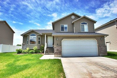 Nice open floor plan and spacious rooms. Kitchen has knotty alder cabinets, pantry, double oven, and large side/side refrigerator included. Vaulted ceilings, new paint in bedrooms, 3" faux wood blinds, partial vinyl fence, fully landscaped with auto sprinklers and nice mature flower beds. Large master bedroom. Master bathroom has garden tub, separate shower and large walk-in closet. TWO water heaters in this home AND an alarm system! Garage has a key pad. Room to grow in basement. This home is move-in ready and super easy to show. Show and sell!