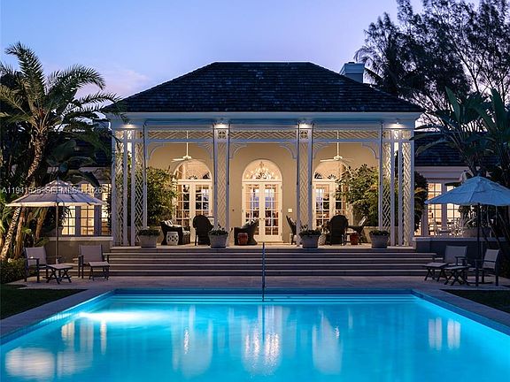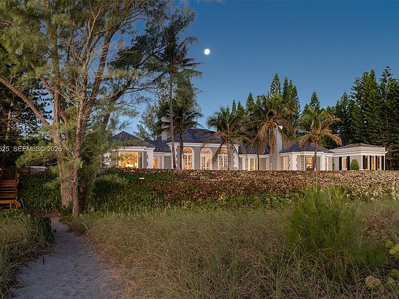 An exceptional opportunity to acquire an architecturally significant oceanfront property on Jupiter Island, with approximately 210 feet of oceanfront. The 4-bedroom, 5-bath main residence features balanced proportions, gracious scale, and ocean views from nearly every principal room, complemented by a separate oceanfront office that offers a private, light-filled workspace. The grounds are thoughtfully composed of formal yet relaxed island gardens, a large swimming pool, and a covered veranda with classic fretwork, creating a timeless setting for indoor-outdoor living and elegant entertaining. A separate service drive provides discreet access to a two-car garage, a golf cart garage, and a one-bedroom guest suite, ensuring privacy for guests. This oceanfront property is a must-see, presenting a rare opportunity to own a Jupiter Island residence with lasting appeal and thoughtful potential.