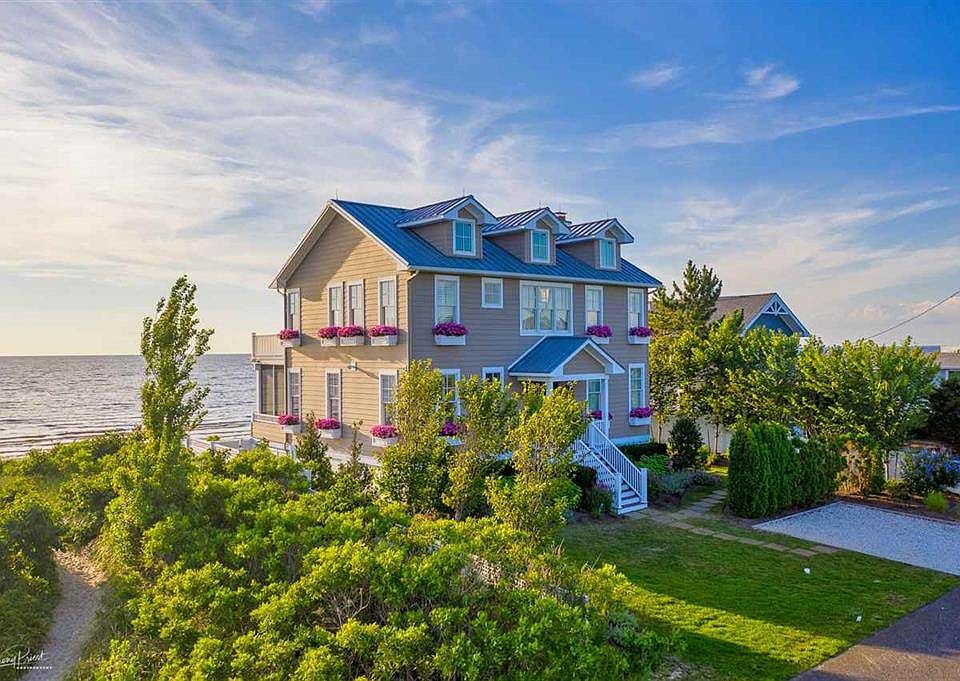 The ultimate Home for peace, serenity, class and Sunsets! This beautiful home was custom construction by local builder John DeBaun and meticulously thought out. As you walk through the thick African Mahogany front door you are greeted by the impeccably furnished home and look out the 8' tall bank of sliders across the back of the home out onto the Delaware Bay. Through the slider you walk out onto a screened porch with Trex decking that extends the width of the home with tall ceilings covered in cedar. The first floor of the home has 10' coffered ceilings, 6" wood plank flooring, plantation shutters, Real wood fireplace with gas insert, 8' solid core 4 hinge interior doors and custom 8"baseboard trim that it 1" thick. The kitchen features a large center island with sink, Viking range, Sharp drawer microwave, Bosch refrigerator and Miele dishwasher with views out to the Bay. The first floor also has a large bedroom with private bath and access to the rear deck and there is a half bath as well. Going up the steps with wrought iron railings to the second floor the ceilings are 14' high and a large window in the front of the home has views of the lush greenery neighboring the home. The master bedroom, master bath and walk in closet look out the slider to a fiberglass deck that spans the width of the home. The other two bedrooms on this floor share a hall bath, one of which is on the bay side has built in bunk beds and a closet with a built in work station for kids. The second floor also has a laundry room with stack-able units and a laundry sink. Some other features of the home are a generator, high level granite throughout the home, all sliders have motorized Hunter Douglass blinds, city sewer, self watering flower boxes, irrigation system, 2 zone natural gas heat (with humidifier) and A/C, on demand hot-water heater, Hardi plank siding, security system and Sonos. This very special property has just one neighbor allowing for wide open sweeping views and Sunsets. Offered impeccably decorated and furnished.