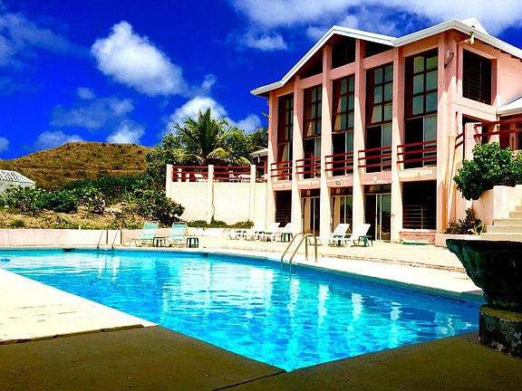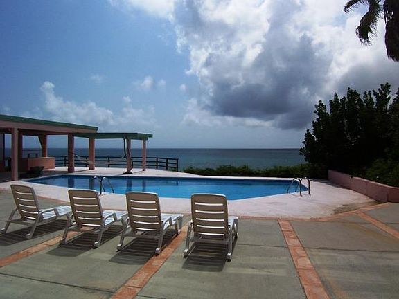 Incredible waterfront location for this large 5-bedroom home designed by architect-owner on the sparkling shore of the Caribbean Sea. It's set on nearly an acre in the prominent east end neighborhood of Grapetree, walking distance to a nearby beach and the Nature Conservatory's Jacks & Issac's beautiful 300+ acres of protected shoreline and the longest fringing reef in the US Virgin Islands. This home boasts an open floor-plan, soaring 25 ft. ceilings, and a wall of windows for turquoise water views, the year-round trade breezes and the gentle sound track of waves lightly rolling into the shoreline below. Olympic style 50' seaside pool is delightful after a kayak or snorkeling excursion down in front. With a little TLC this home can be brought back to a splendid home or terrific rental