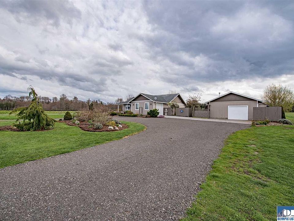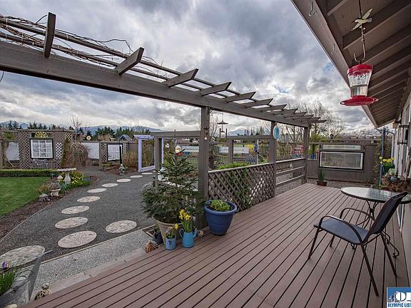 Garden paradise - This home features include a Master Garden in the back yard with beautiful Olympic Mountain views. Home has 2 bdrs, office & den, formal living room, with vaulted ceilings, beautiful kitchen - family room - dining area opening to the backyard deck with southern exposure. Detached garage/workshop has a garage door on both ends with a woodstove inside, perfect "Man Cave". Circular driveway for easy access and guest parking. Home has a 4 bedroom septic and a 217' artesian well.