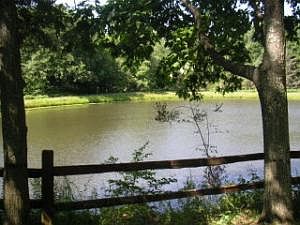 GREAT SECLUDED LOCATION ON A 3-4 ACRE POND. WOODED. RHODODENDRONS SURROUND THE CEDAR LOG HOUSE THAT AFFORDS A VIEW FROM THE LIVING ROOM