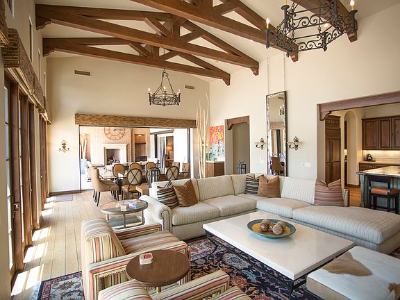 Tucked high above the valley floor with stunning panoramic mountain views, this beautiful Troy Zimmerman designed desert retreat strikes the perfect balance between design and comfort with its high-end designer furnishings & décor, three large en-suite bedrooms, office/media room/man-cave, large open-concept great room with dramatic wood-beamed ceilings, gas fireplace, walls of pocket sliders and solid wood doors, and showcasing a gourmet chefs kitchen complete with top of the line Sub-Zero, Wolf and Fisher Paykel appliances. The stunning desert landscaping has been meticulously designed by Wayne Conner and exudes a truly exceptional indoor-outdoor desert living experience featuring stunning panoramic mountain views, infinity edge pool/spa, large outdoor living space with gas fireplace and perfectly placed custom designed furnishings, spacious outdoor BBQ/bar and dining space for entertaining with family and friends highlighting the breathtaking panoramic sunset views! Furnished.