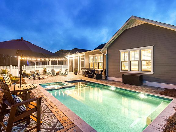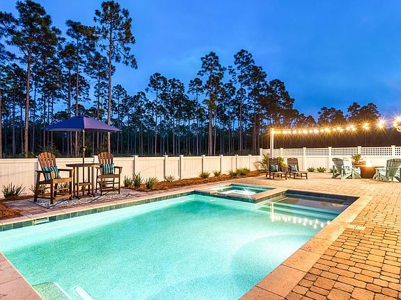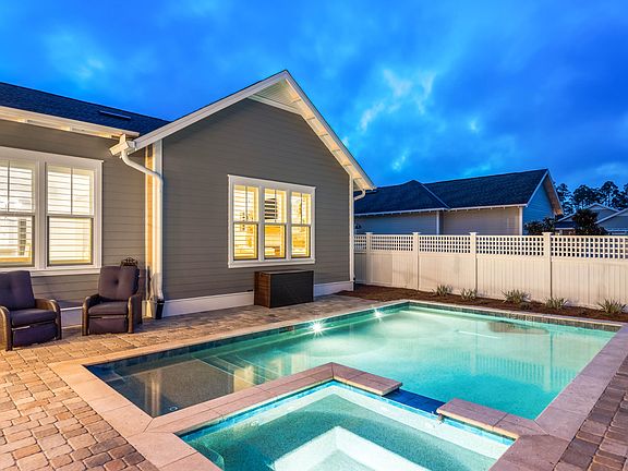 Just Reduced $100,000. Built in 2020, this impeccable, highly upgraded Huff Home offers seamless one-level living with a private pool on a quiet, 5-home street in the desirable Stillwater Phase of Watersound Origins. Situated on a large, private lot with a wooded preserve in the back and a community park in the front, enjoy a calming sense of seclusion at this Gardenia plan with 2,770 sq ft of spacious living area with 4 large bedrooms, an office, and 3.5 bathrooms. From the moment of entry, notice an array of customizations including 10' ceilings, 8' doors, and crown molding throughout as well as shiplap accents and 4.5' plantation shutters. The living room is anchored by an electric fireplace with reclaimed wood mantle and custom, built-in shelving. Plus a well-equipped, gourmet kitchen. Expertly equipped, the kitchen offers floor-to-ceiling cabinets, granite countertops, and Bosch stainless steel appliances including a vent hood and Sharp drawer microwave. All bedrooms are spacious enough to accommodate king-size beds plus feature bathrooms with designer-selected tile and extended closets outfitted with built-ins.