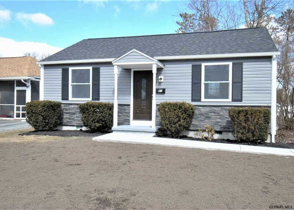 EVERYTHING BRAND NEW! AFFORDABLE LOW TAXES! A Perfect starter home! This 2 BdRm , 1 Full Bath Ranch in desired NORTH COLONIE SCHOOL DISTRICT. ATTRACTIVE Stone front facade & dark shutters make for GREAT CURB APPEAL! BRAND NEW BLACKTOP DRIVE WAY. NEW CONCRETE WALK WAY & BACKYRD PATIO. INTERIOR GUTTED TO STUDS.. INCLDS NEW MODERN KITCHEN WITH PENINSULA ISLAND & SEATING,RECESSED LIGHTING. NEW INSULATION. REFINISH HRDWD FLRS. NEW ELECTRIC. NEW ROOF. NEW VINYL WINDOWS. CENTRAL AIR! A MUST SEE!