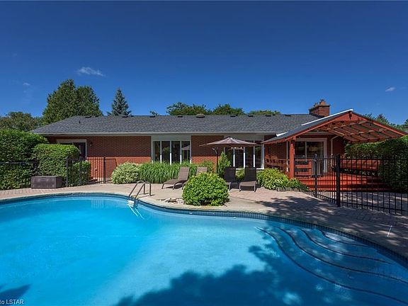 A rare find in sought after Lambeth Park Estates. This executive ranch features three bedrooms, a beautiful main floor family room, gas fireplace, large formal dining room and living room overlooking a beautiful Hollandia inground pool. All located in a south facing gardener's paradise half acre lot. Why wait to put in a pool. New furnace May 2020, new gas fireplace 2019, all exterior doors and windows have been updated over the years .