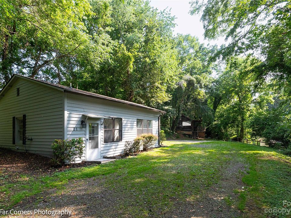Come see this quaint house in a peaceful setting that beckons you to relax! This home features 2 bedrooms, 1 large bathroom, open floor plan, tall ceilings and a cute kitchen. Conveniently located close to downtown Asheville, Black Mountain and the VA Hospital. This property had a cabin/outbuilding that has been removed but had water, sewer and its own electric meter for possible future uses. If you are looking for a solid home in a peaceful setting then this is the one for you.