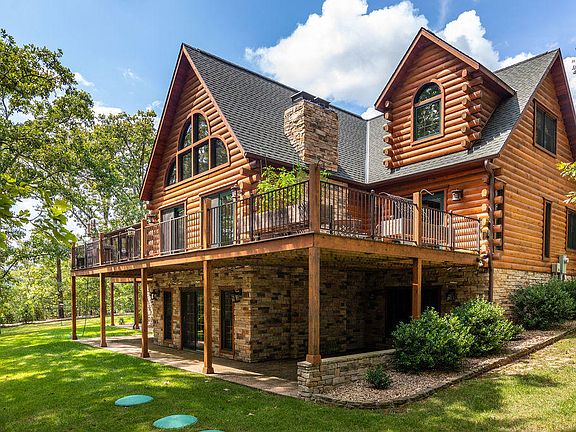 Spectacular! Custom built lakefront log home in the exclusive gated community of Secret Point, a private peninsula that is one of the most beautiful lakefront communities on Table Rock! Built by one of the area's premier builders is this 4223 square foot log masterpiece that is both stately and welcoming, surrounded by mature trees and the sound of the waves lapping the shore. Expertly designed and finished, the warmth of the natural wood creates a true Ozarks paradise. Superb layout for a residence and for hosting family and friends as they join you for a lake getaway. The beautiful master suite is highlighted by a well designed master bath. Everything you need for everyday living is on the main level with no steps! Also on the main level is an impressive office/den with soaring ceilings and gorgeous built-ins. Everyone's favorite spot is the spacious screened-in deck overlooking the tree-line lake frontage. The boat dock and an available slip is right next door, just 120 paces from your home. If you want more elbow room, the adjacent lot is available, too! Looking for a turn-key lake home? The furnishings, boat slip, lift, and even the boat are available for purchase, too! You've not seen anything like this... Come make it yours!
