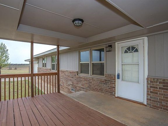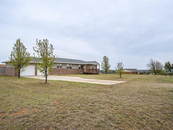 OPEN HOUSE, SUNDAY, MAY 6, 2-4 PM. Charming updated country home on 0.8 acres MOL with large fenced backyard. Awesome views for 360 degrees. This 4 bedroom/2 bath, 2 car garage brick and frame home can also be used as a 3 bedroom with back family room if preferred. Oak hardwood floors have been redone throughout. Freshly painted inside and out. Large covered front porch. Newer double pane thermal windows. Eat-in Kitchen with new granite countertop and newer stainless appliances. House has aerobic septic system and water well. Located just a few miles southwest of Old Town Guthrie and a couple of miles south of highway 33 with great food and shopping only a short distance away.