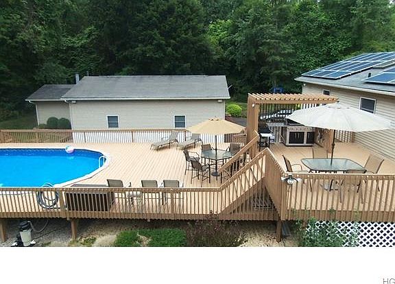 Beautiful Custom Contemporary 4 Bedroom, 2 Bath Bi-Level on over an acre of park-like property. More upgrades than we can list including: Andersen Tilt Windows, Central A/C, Complete Home Solar System, Cathedral Ceilings, Newly Renovated Bathrooms, Pellet Stove, Over-sized 2-Tiered Deck which wraps around 18x33 ft Pool, Possible M/D, Professional 24x36 Garage with 12 ft Ceiling and 10 ft door...Electric Hydraulic Forward Lift (7000 lbs), 220 Line, 100 amp Service, Over-Head Storage, Exhaust, Separate Heating System, & Cable....a car lover's dream!