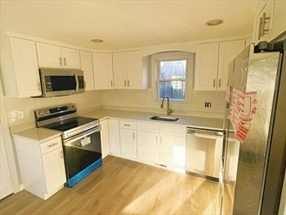 Beautiful renovated home. Offering 3 good size bedrooms, a large new eat in kitchen(2022), new cabinets(2022), new stainless appliances (2022)(washer & dryer are not new) and tons of stone counter space with new floors across whole house(2022), recess lighting, updated windows, Newer roof, New siding(2022), New one and half baths new plumbing (2022),new central heating & AC(2022) ,and new 200AMPS(2022) , the basement can use for a play room or storage space, This property noze code is R-2, a large side yard lot, it is potential addition another unit. The space is incredible and the value is there. Convenient to all amenities including the bus stop is in the corner, a short distance to Jackson Square, Community rail, Post office, Whitmans Pond.The offer due July 31 at 8:00pm.