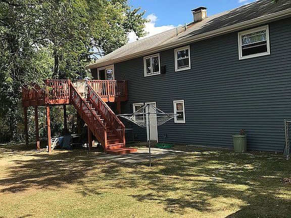 Colorful exterior new siding beautiful lawn huge 1/3 acre back lot raised deck finished lower level Quiet street eat in kitchen dining room wash solar panels room 2 car garage