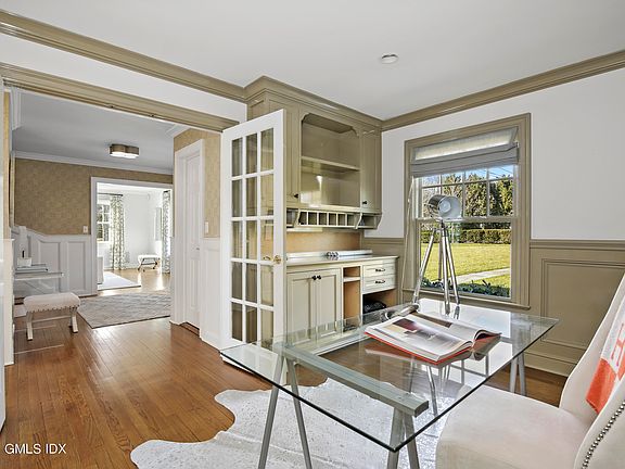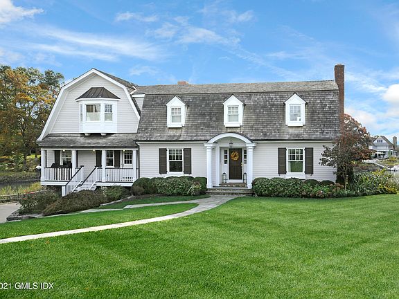 Waterfront five-bedroom Nantucket style home with private dock and over 250 feet of water frontage is nestled on .52 acres at the end of a cul-de-sac. Significant renovation and expansion was completed in 2009. Stylish interior designed for entertaining offers water views from most rooms, exquisite details and luxurious finishes. Marble-clad kitchen with center island opens to large family room with breakfast area and stone fireplace. Dining room and living room with fireplace lead to all season porch and deck with built-in grill. Office and guest suite complete the main level. Second floor master suite with double height ceiling, gas fireplace, balcony, his/her walk-in closets, and spa bath. Two more spacious en-suite bedrooms with option to convert to three family bedrooms.