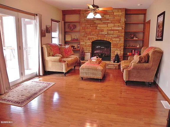 Sitting back off the street on a secluded wooded lot, this house allows the owner to walk to Lake Galena via the green space on three sides of home down to the lake. Main floor master bedroom and bath, laundry and garage attached by a breezeway provides easy one-level living. The main floor also features a gas, stone accented fireplace with built-in shelves; oak floors; large kitchen with island and granite counter tops, birch cabinets & stainless steel KitchenAide appliances; an office/den with French doors off the entry foyer; screened porch & deck; and a half bath in the breezeway, which also connects to the bonus room above the garage with separate heating & cooling. The upper level has two large bedrooms, a full bath and loft area. The walkout lower level has slate tile floors with in-floor heating; home theater area with sound system; lots of room for game tables and toys; two storage areas; two bedrooms and a third full bath. Note: septic system is designed for four bedrooms. Walk-out to the concrete patio and large yard with fire pit. Furnishings are available to be conveyed at closing on a separate bill of sale. (kb41)