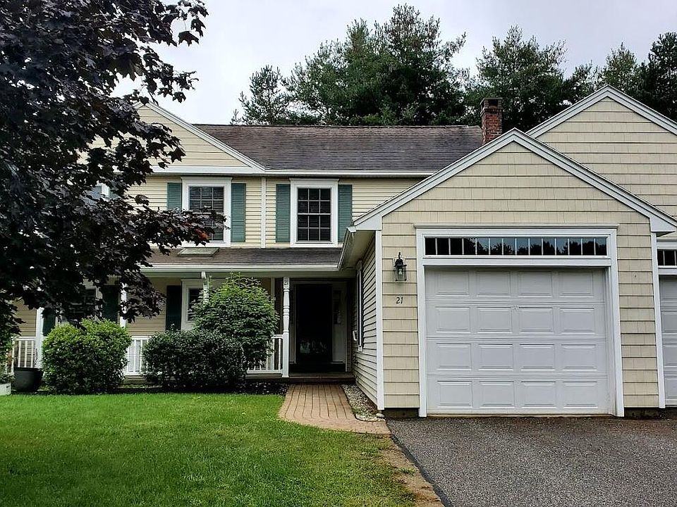 Welcome to Signature Pines ... Desirable and Conveniently Located, this unit has so much to offer! Optional single level living, first floor bedroom with en suite bath. Primary bedroom with en suite bath on second floor. Granite kitchen countertops, stainless steel appliances, tile and wood flooring. Cozy gas fireplace, skylights and year round heated sun room adorned with plantation shutters. Bonus room on second floor which can be used as a guest bedroom, study or office. Private backyard with wooded view and just steps from the pond! Full basement and additional storage over garage. Ready for your personal touches. Close to town, golf club and major road access.