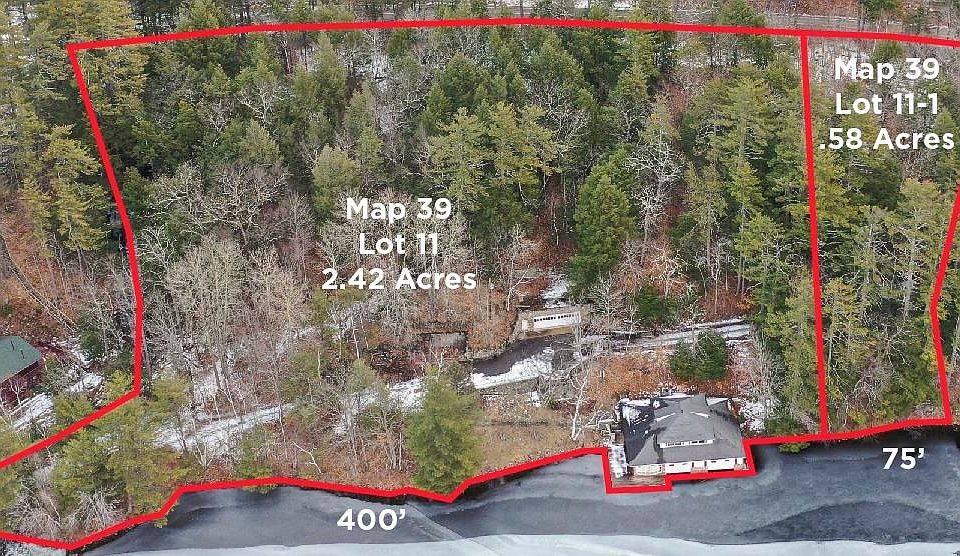 CLOSE PROXIMITY TO WOLFEBORO & ALTON ACTIVITIES & SHOPPING. RARE 3+/- ACRE TWO LOT PARCEL CONSISTING OF A TOTAL OF 475'+/- PRIME WINNIPESAUKEE LAKE FRONTAGE! Lot #39/11 is 2.42 Acres with 400'+/- of water frontage, bordering a scenic brook with a majestic waterfall, 32'X25' stone/steel garage... potential for building above and a unique 2,400 sq. ft. vintage boathouse with 2 large boat slips (12'X30 & 12'X28') and seasonal living quarters consisting of 2 Bedrooms, 1 & 1/2 Baths, living/kitchen, den (new staircase recently added) and extensive wrap around decking/docking. Structure appears sound but interior will need work before moving in. Lot#39/11/1 is a .58+/- building lot with 75' of lake frontage. Could access from existing driveway on East Side Drive (Route 28-A) and construct a new homesite towards top along East Side Drive. A seasonal dock may be permitted on its lake frontage below. Existing shared driveway between two stone pillars along East Side Drive currently proceeds about a third of the way down to another garage/shed in need of work. One might prefer to extend this driveway further down to a parking area above a new year round residence incorporating existing stone garage below thus reducing the need to utilize the right of way. SO MANY OPTIONS FOR BUILDING THE ULTIMATE FAMILY COMPOUND! OR MAYBE ONE MIGHT PREFER JUST RENOVATING BOATHOUSE & BUILDING A COMFORTABLE SMALLER YEAR-ROUND HOME ABOVE ThE GARAGE w/ PRIVACY & WESTERLY VIEWS?