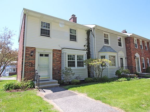 Pristine, updated end unit in the pretty Silvermine Manor--set on a picturesque pond with mature trees and beautiful landscaping. Main level with spacious living room featuring hardwood floors and charming wood burning stove, bright kitchen, updated powder room and formal dining room that opens to the sunroom with new tile flooring. Upstairs you'll find two roomy bedrooms with hardwood floors and a full bath. The lower level offers a cozy family room, lots of storage closets and laundry/mudroom that leads to the garage. Quiet complex in a convenient location close to schools and shopping--just move in and enjoy!