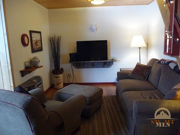 Enjoy the privacy and views of a creek from your dining table in this cozy, yet spacious, double-lofted, 2 bedroom, 2 bath Hill Condominium. This unique space boasts a delightful kitchen with granite counter tops and custom cabinetry, along with separate bedroom and European-style woodwork throughout. The upper loft serves as an extra sleeping area with incredible views of Lone Peak. This is a must-see unit and one of the more affordable options in Big Sky. It is located within walking distance to ski lifts