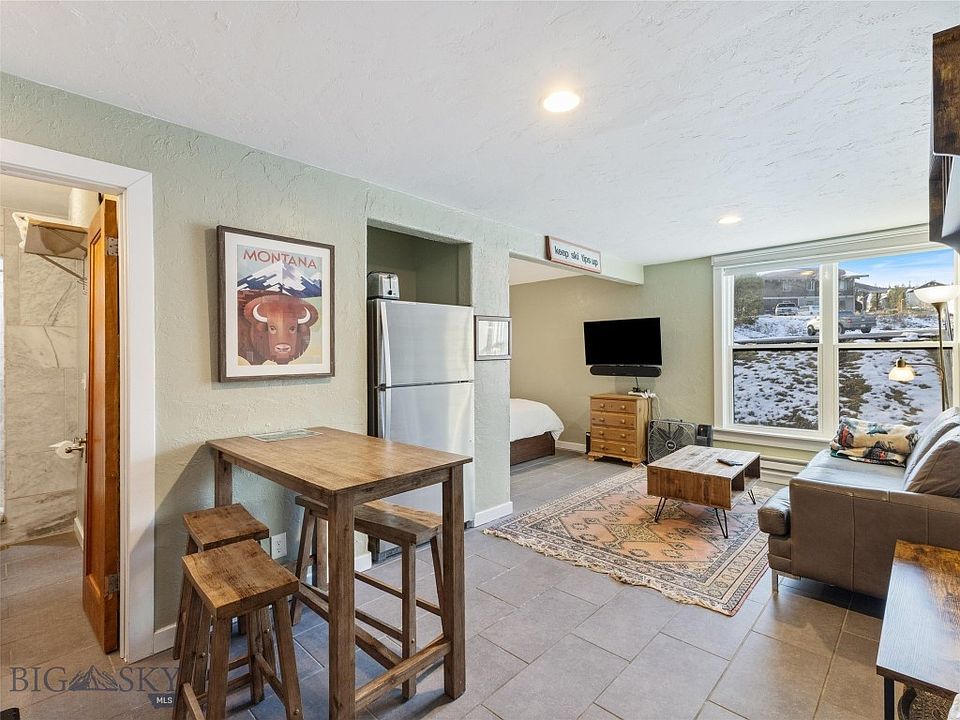 Great opportunity to jump into the market in the Big Sky Mountain Village. This Hill Condo Studio has recently been remodeled including full tiling in the bathroom and added sound insulation throughout the condo's shared walls. Enjoy the convenience of this ground floor unit which faces Lone Mountain. This unit is close to the free Skyline shuttle stop, and near enough to the Big Sky Base Area that you could leave your car parked at the condo. This unit has an establish and successful short term rental history with a local management company. Reap the benefits of the short term rental market immediately with already confirmed bookings.