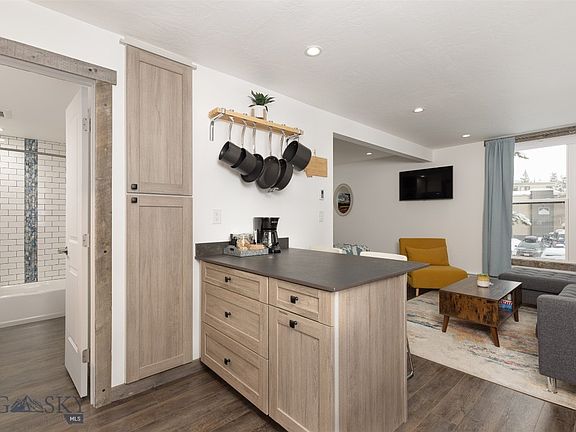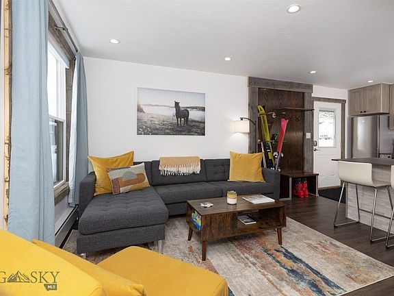 Welcome to the Big Sky life at the Hill Condos, where this meticulously remodeled 440 square foot studio awaits its next fortunate owner. Nestled near the base of Big Sky Resort, this ground floor unit makes living the mountain lifestyle effortless. Step inside to discover a thoughtfully designed and beautifully remodeled space that maximizes every square foot, offering a seamless flow from the cozy living area to a compact yet fully equipped kitchen.