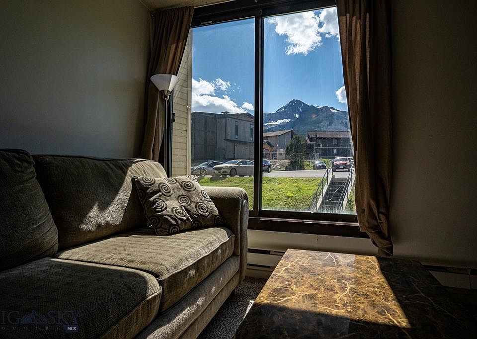 Here is an opportunity to own an affordable studio great Lone Peak Views! This is a first level unit in the Alpe d' Huez Bldg. This would be a great rental opportunity for full time living! Walking distance or short drive to skiing, biking, hiking and everything else Big Sky Resort base area has to offer!
