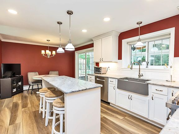 Nestled on a serene 1.75-acre lot in a private cul-de-sac in Sharon, NH. This exquisite 3 bedroom , 3 bath home offers a perfect blend of country charm and modern luxury. Abutting conservation land, the property offers privacy and direct access to nature. Features include, a large screened in 3 season porch off the gourmet eat- in kitchen, Formal dining room, and spacious living room with log burning fireplace. Upstairs on the 2nd floor you will find a large den/office bright with sky lights, 2 bedrooms, a full bath with laundry, and the spacious main bedroom with walkthrough closet, and private tile bathroom. The backyard boasts a deck, a large shed, and a concrete pad for anything you want, as well as various gardening spaces. The basement has a lg walk-in cedar closet for storing winter clothes, and extra bedding, a water treatment system and extra storage. Delayed showings until Open House Sat 6/1 11-1 and Sunday 6/2 12-2 !