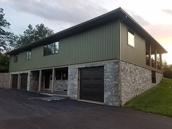 Large stone rancher with daylight basement and three garage spaces, on 3.2 acres. Finished basement with laundry room. New siding, roof, and windows in 2019. Large covered porch on the rear of the house with composite decking and metal railing. Detached 66' x 40' barn with heated area and full bathroom. Self sustaining solar system installed in 2018. Two animal stalls and large fenced in pasture area.