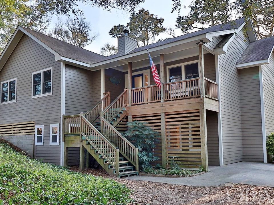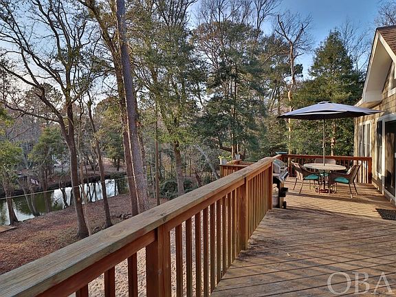 Welcome to your private oasis nestled in the serene woods, offering the perfect blend of tranquility and beach living. This stunning 3-bedroom, 3,038 sq feet home boasts a spacious layout and includes versatile multi use space on the ground level. Nearby school, shopping, restaurants, golf, beaches all connected with biking/walking paths. The property was custom built in 1996 and owned by one family and sits on .65 acres As you approach the property, a picturesque canopy of trees guides you to the entrance, offering a sense of exclusivity and natural beauty. Step inside, where the open-concept design seamlessly connects the living, dining, and kitchen areas, creating an inviting space for entertaining or relaxing with loved ones. Large windows throughout the home allow natural light to flood the interior, showcasing the beautiful hardwood floors, vaulted ceilings, and wood burning fireplace. The master suite is a true retreat, offering a spacious bedroom overlooking the water, walk-in closet, and en-suite bathroom. Two additional bedrooms provide comfortable accommodations, with hallway bathroom, laundry and additional multi use room on the main floor . One of the highlights of this property is the ground level flex space suite which includes its own private entrance, kitchenette, and full bathroom. This versatile space could be used as a studio or a home office or game room. Outside, the expansive deck overlooks the tranquil canal, offering a peaceful setting to enjoy your morning coffee or evening cocktails. The low maintenance landscaping and mature trees provide privacy and a sense of seclusion, while still being just a half mile bike or walk to the beach. The canal is perfect for boating, jet skis, paddle boarding, kayaking or cannoning. Connecting to the open waters of Ginguite Creek and Currituck sound This home is truly a rare find, offering the perfect combination of luxury, comfort, and natural beauty. Don't miss your opportunity to own this exquisite property and start living the coastal lifestyle you've always dreamed of. Flood X zone.