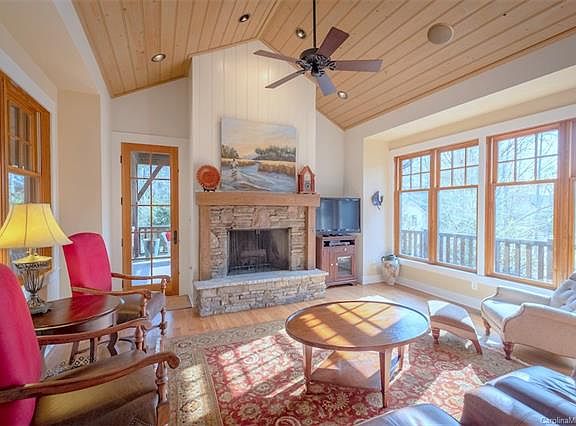 Comfortable but elegant home designed by acclaimed architect Al Platt, known for his mountain inspired designs and winner of the 2006 HG Dreamhouse. The inspiration for this design were the Appalachian springhouse cabins of yesteryear, thus affording a simple design which capitalizes on a true mountain lifestlye---most important would be attention to outdoor living space. In line with this, this home has a screened porch for outdoor dining and an open deck which connects to another outdoor porch with fireplace for lounging anytime of day. The interior has an open floor plan, which is great for entertaining, vaulted wood ceilings, hardwood floors and main level living. The downstairs has a family room, and 2 bedrooms, each with a separate bath. Wonderful cabinetry throughout with high end finishes. And last but not least, located on over an acre of land which adjoins green space with a creek. Near all the conveniences and Pisgah National Forest is a stone's throw away. Come see!